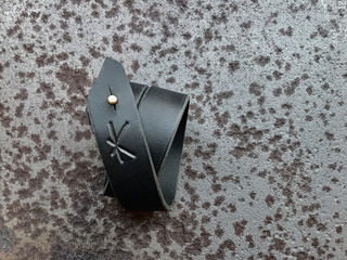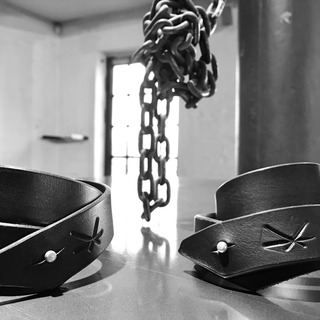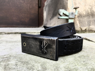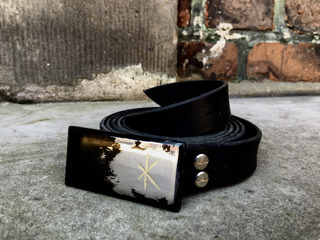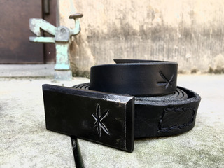 Cow leather is cut, processed, oiled and then stitched to a blacksmithery steelbuckle. All 100% handcrafted and unique in finishing.